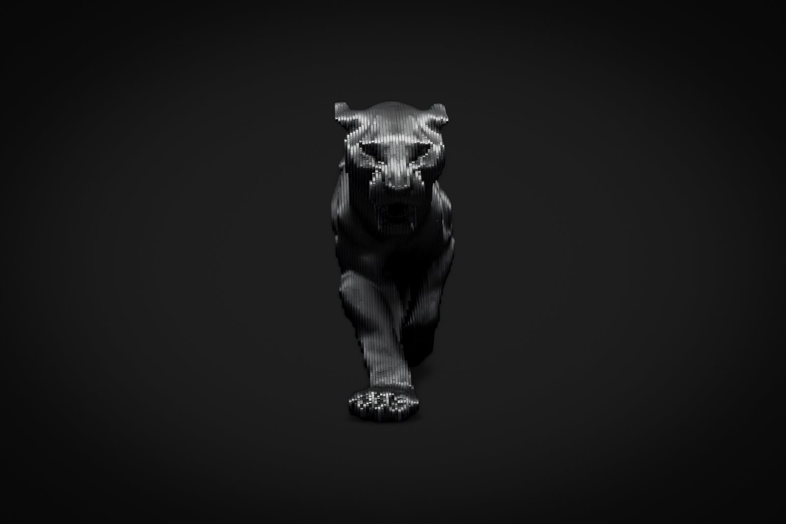 Feroso roars with sculpted force — a creature carved from motion and muscle. Its layered form pulses with primal energy, frozen at the edge of attack. Power and presence collide in this bold expression of nature untamed, where form becomes instinct, and stillness bristles with the tension of fury restrained.